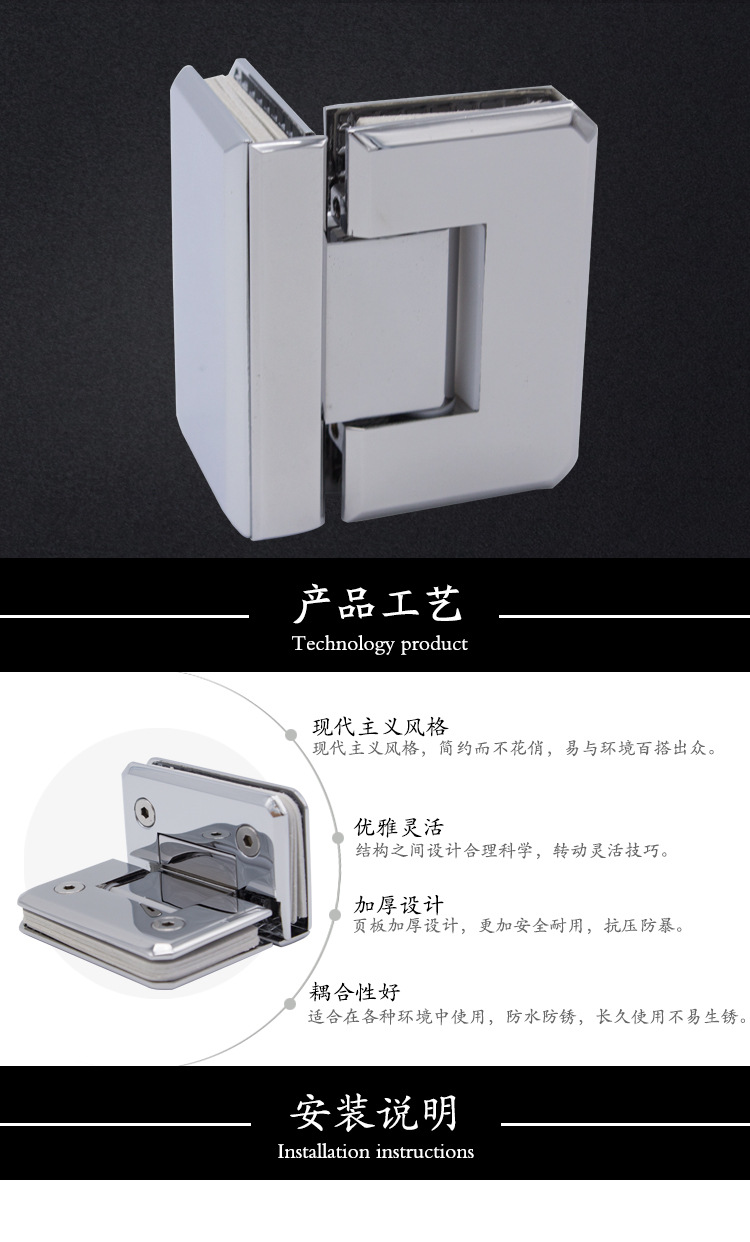 2、各种玻璃/木板隔断的固定.玻璃/木板可以与地面垂直也可以平行安装.适用于各种玻璃柜的固定连接.夹6-12mm玻璃