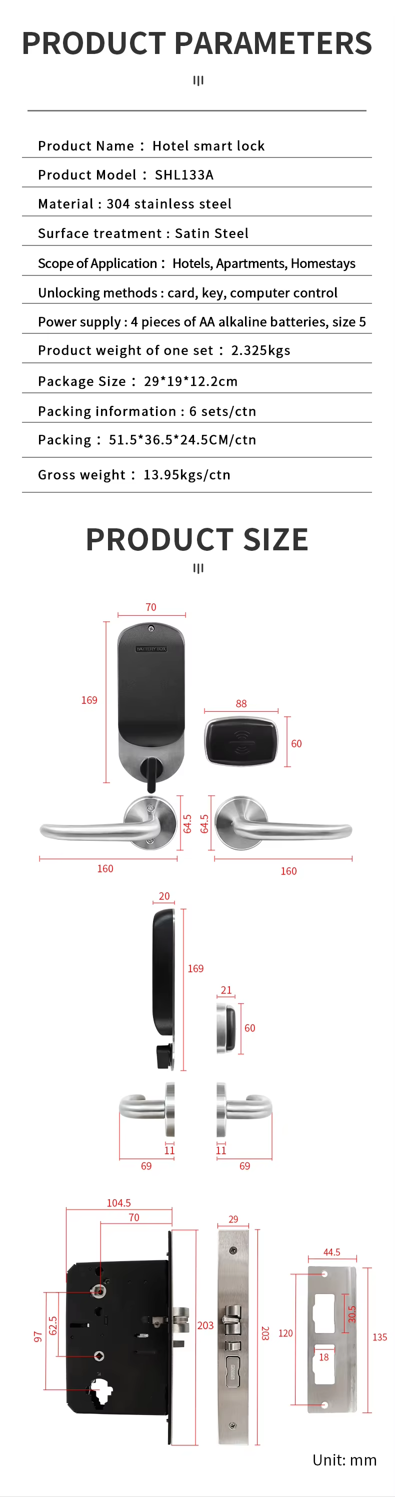 SHL-133A Stainless Steel 304 Hotel Split Type Card Smart Lock